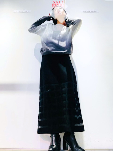 ぽこぽこと表情のある“透け素材”が印象的ニットスカート
