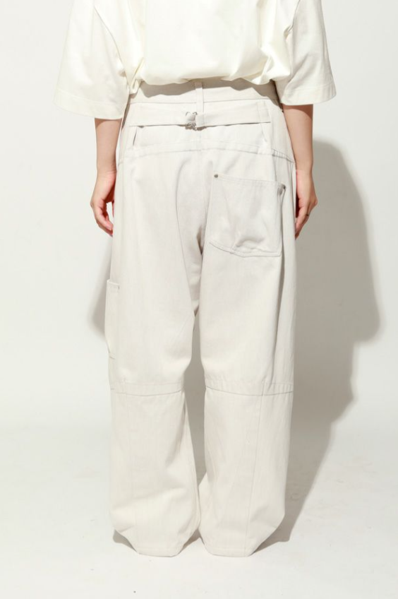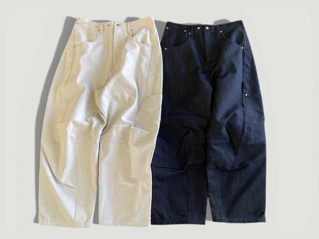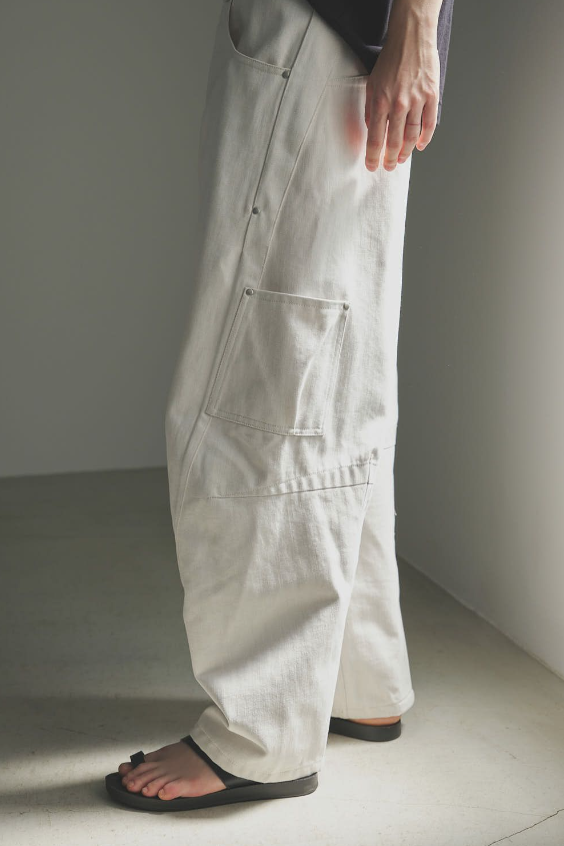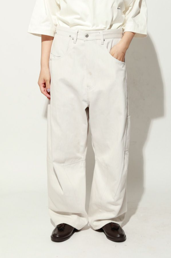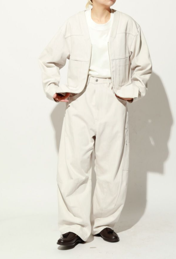 ホワイトデニムにはベージュ糸を差し込み、奥行きのある色味に