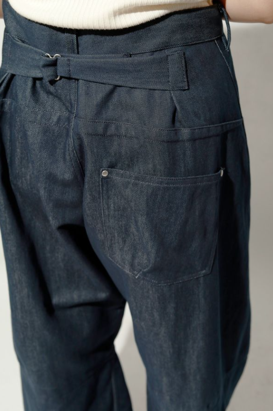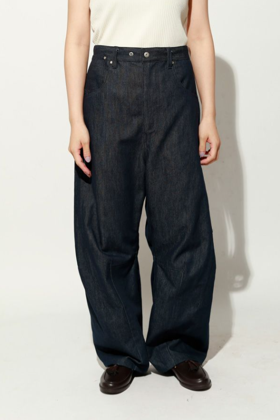 ヒップ周りに程よいゆとりを持たせ、膝下から裾にかけてすっきりテーパード。 。