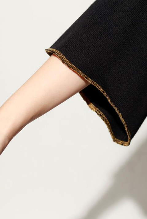 斜めカッティングを取り入れた独特なシルエットが印象的