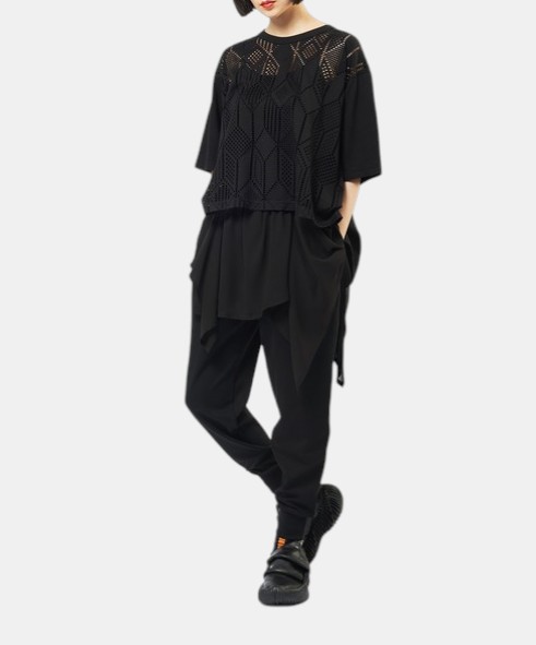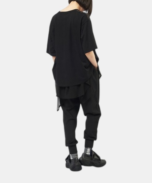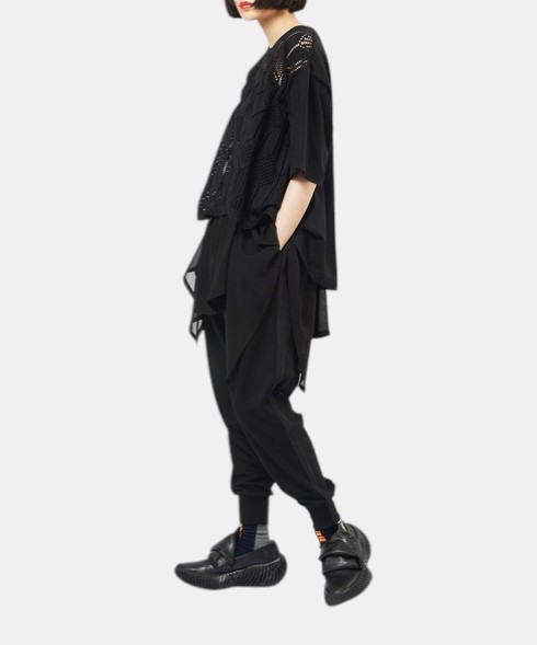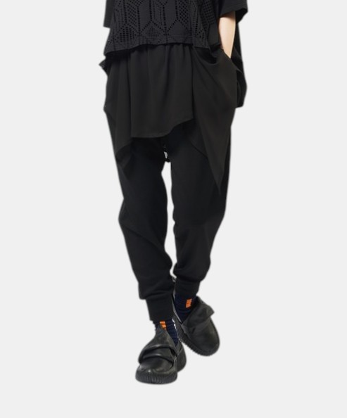 カットソー素材ならではの快適な穿き心地と、モード感のあるシルエットを両立