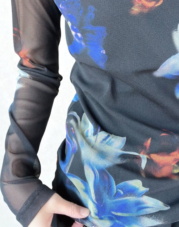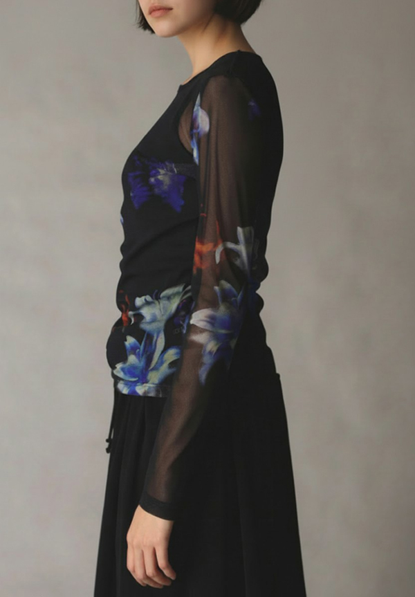 LILY PATTERN SOFT TULLE LONG SLEEVE T