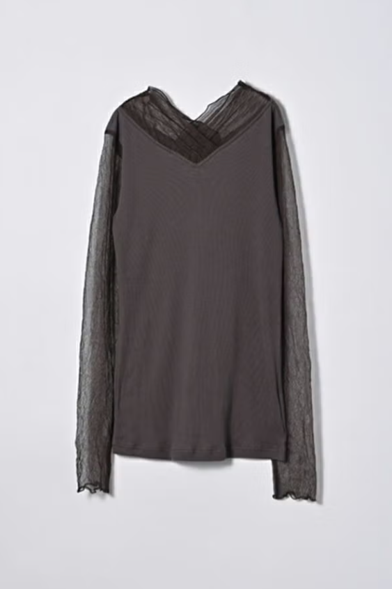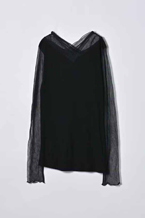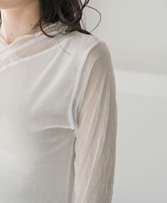 大人のニュアンスは首元&袖に宿る、シアーを纏うロンTEE。