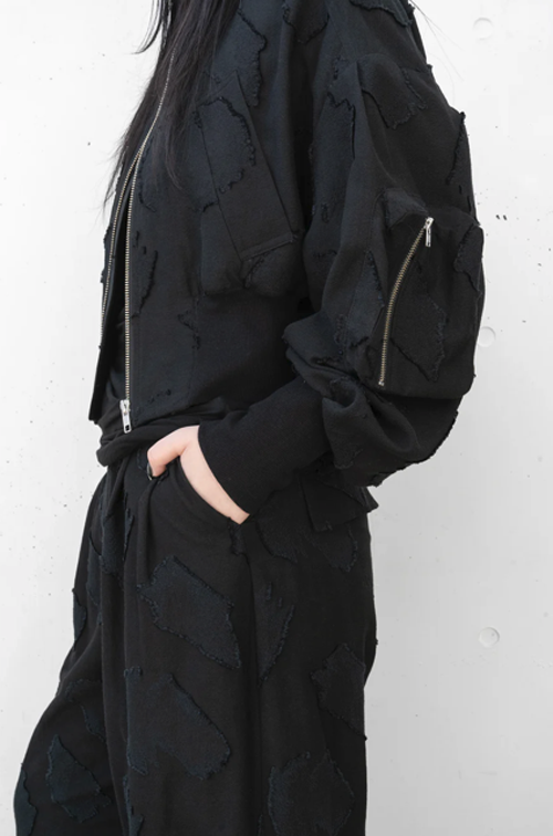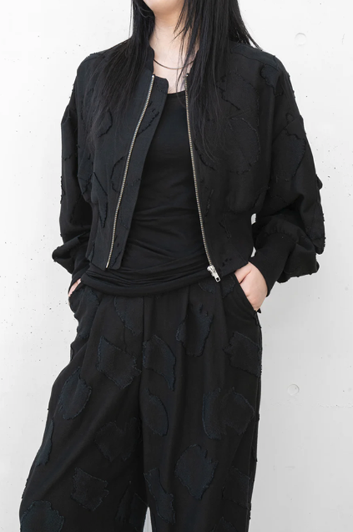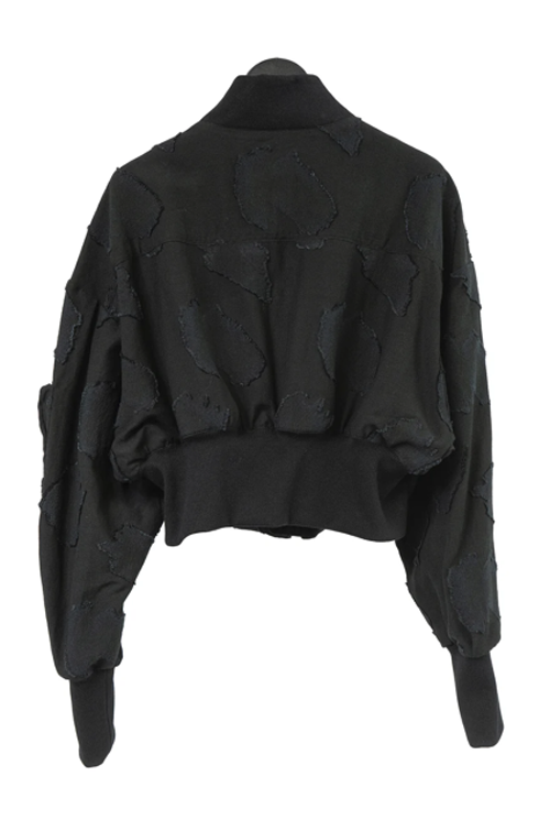 アブストラクトな輪郭をカットしたカットジャガード素材を使用