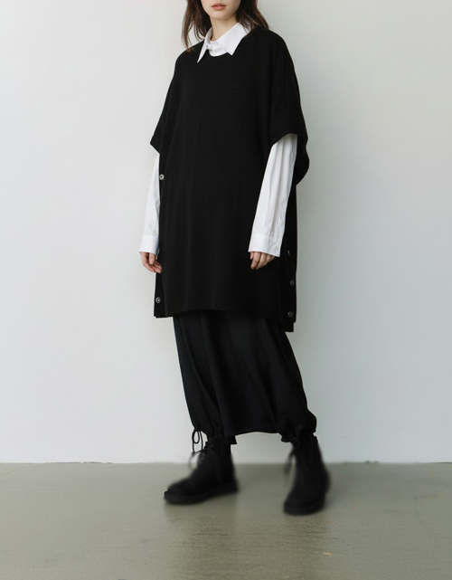 SPIDER WEB KNIT SIDE BUTTON SHORT SLEEVED T-SHIRT