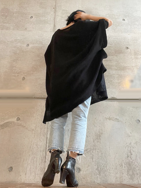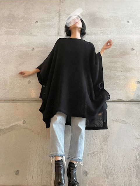 蜘蛛の巣のようなローゲージの編み地を再現したスパイダーウェブニット生地を使用しています。