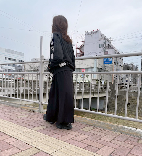 胸元に大胆にあしらわれたYohji Yamamotoのシグネチャー