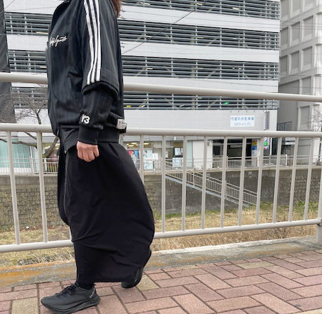 袖口に配置されたY-3ロゴがアヴァンギャルドなデザイン性を引き立てる
