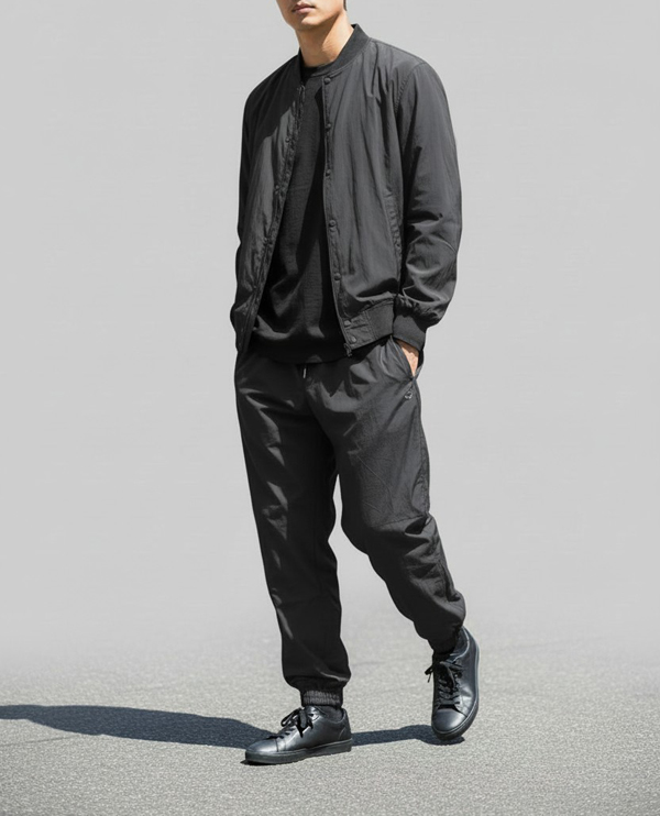 伸縮性のある袖口と裾が軽やかなフィット感と通気性をもたらし、ゆとりのあるシルエットが流れるようなラインを描く