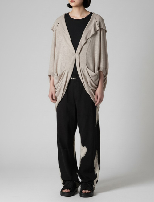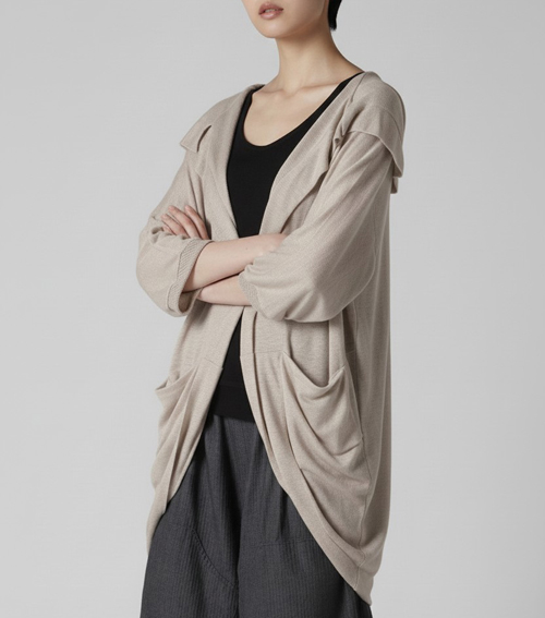 LINEN JERSEY LOOSE FIT POCKET CARDIGAN