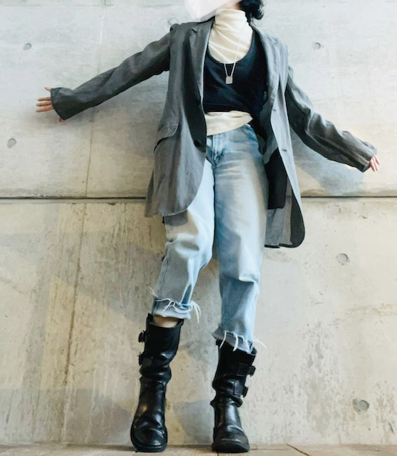 メンズのテーラードを起点に、女性の体に寄り添うバランスに落とし込んでいます。