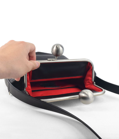 大きな玉の口金はパチンと閉まって防犯面でも安心です。